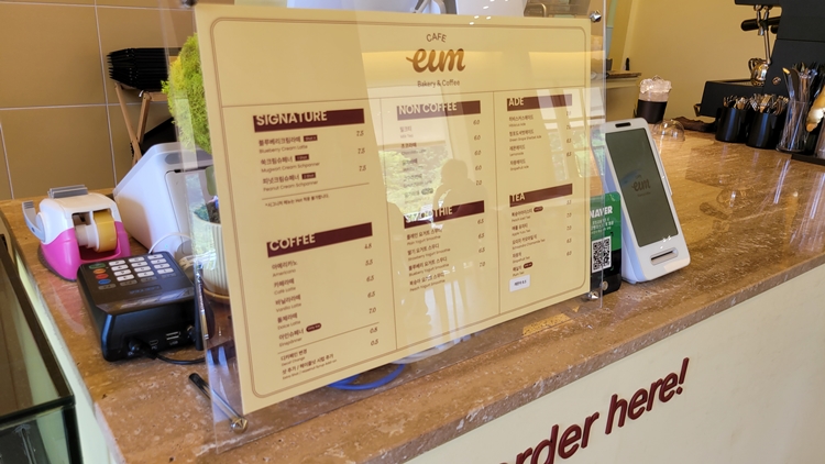 🍹 대표 메뉴: 블루베리크림라떼(7,500원), 쑥크림슈페너(7,500원), 피넛크림슈페너(7,500원)