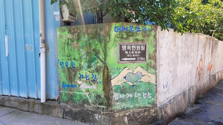 올라갈 때는 몰랐던 마을길이, 내려오는 길에 더 정겹게 보입니다. 곳곳의 벽화가 시골의 소박한 정서를 담고 있어 산책의 여운을 더해 줍니다.
